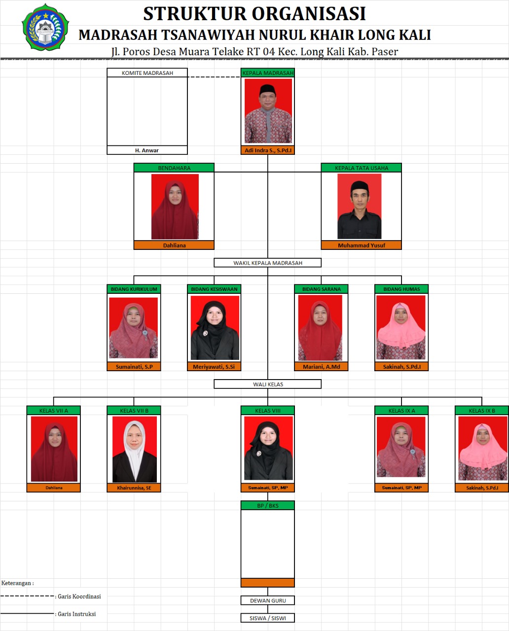 Perjalanan dan keberadaan MTsS Nurul Khair Long Kali dalam melaksanakan pengabdiannya telah mengalami pergantian kepemimpinan, yang secara berurutan:
